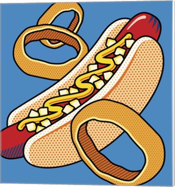 Hot Dog Onion Rings On Blue (12" x 13")