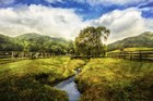 Evergreens And Yellow Field