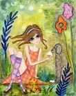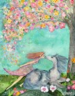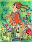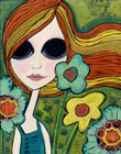 Big Eyed Girl Raining Flowers