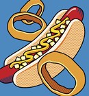 Hot Dog Onion Rings On Blue