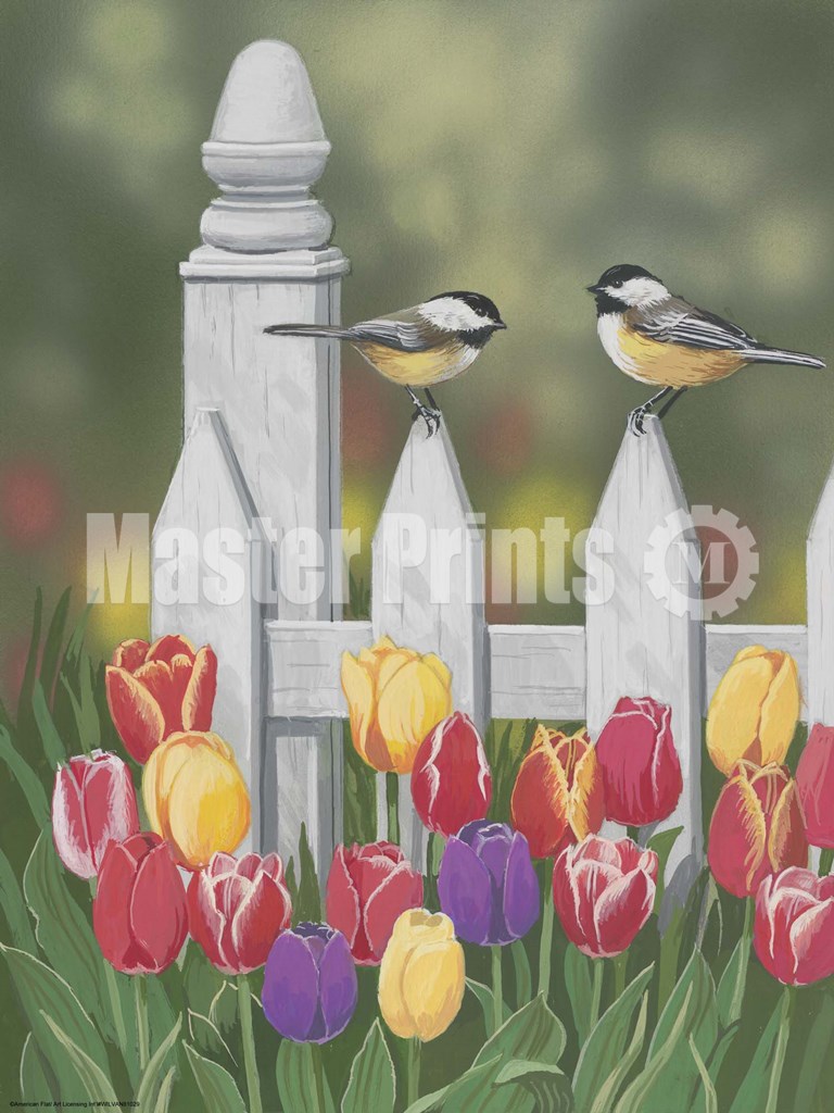 Title: Chickadees And Tulips
