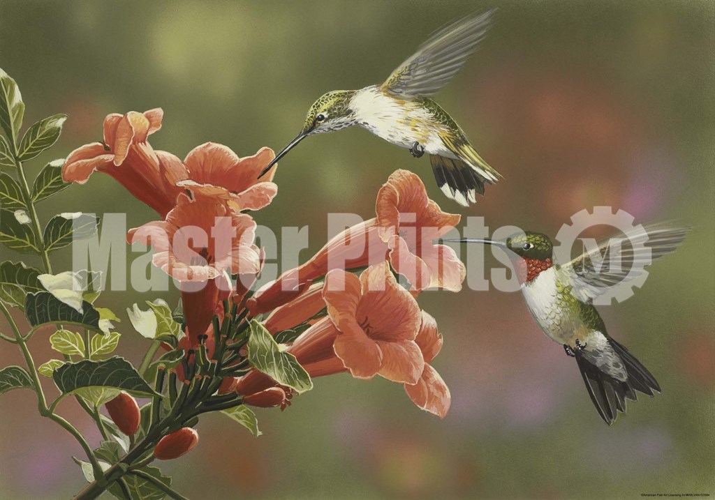 Hummingbirds and Trumpet Flowers by William Vanderdasson art print