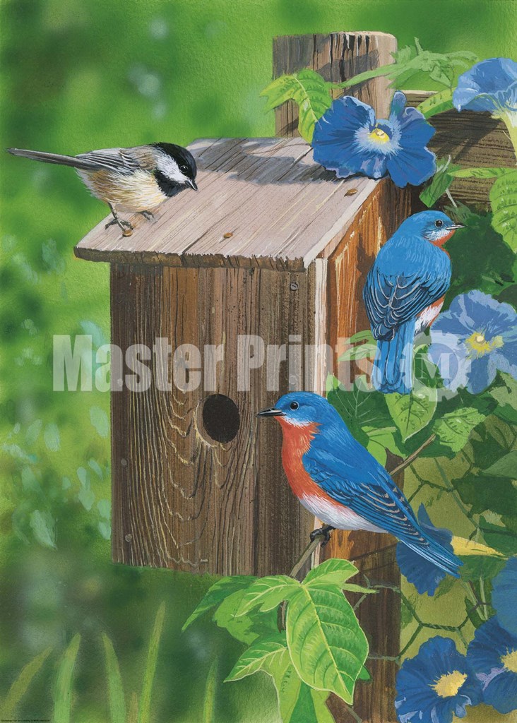 Title: Birds At The Feeder (Bluebirds)
