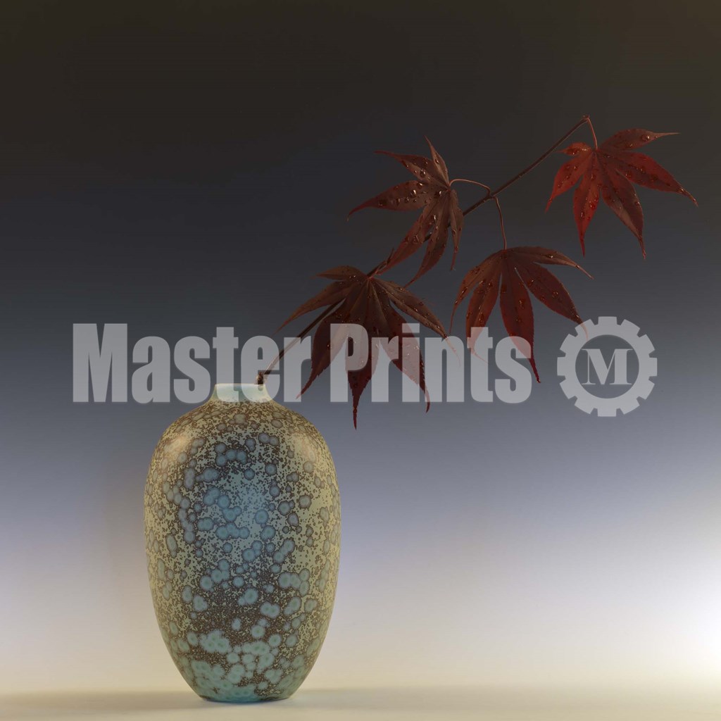 Title: Still Life with Japanese Maple and Raindrops