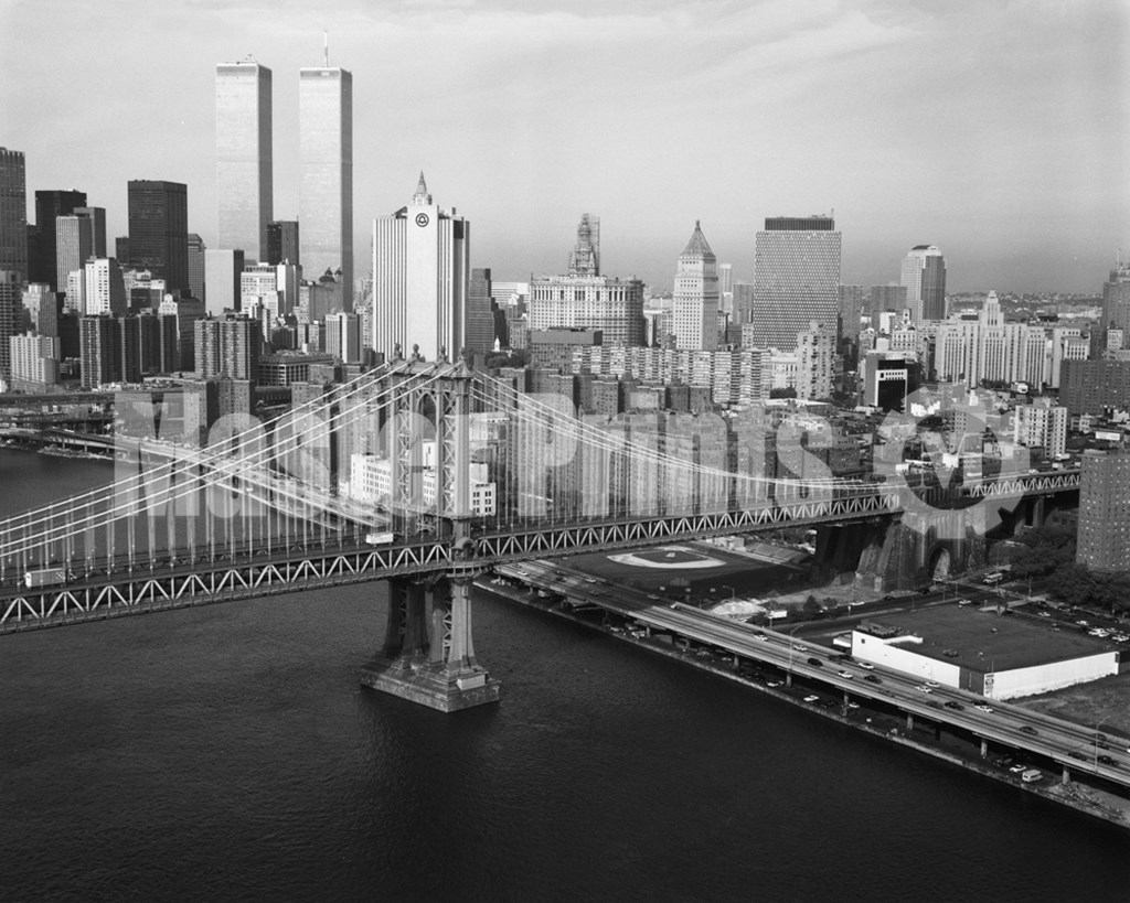 Title: Manhattan Bridge with Twin Towers behind