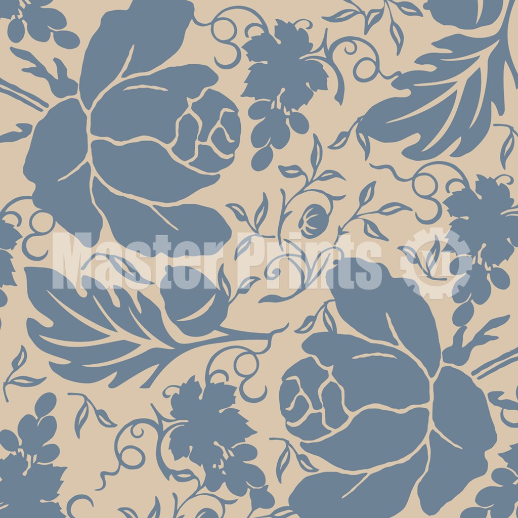 Title: Grapes and Buds Blue and Taupe