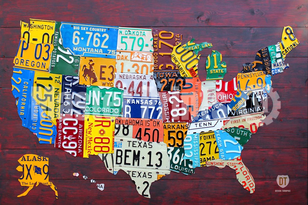 Design Turnpike License Plate Map USA IV