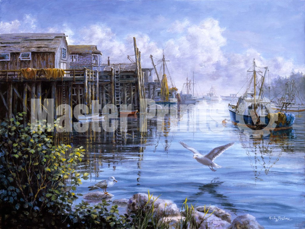You are viewing a Serigraph print. Fine artists create serigraphs in limited runs by applying layer upon layer of pigment to the print surface by pressing it through a mesh screen containing a stencil. The complex and lengthy process commonly uses inks for pigment and stencils made of a variety of materials. Because of the nature of the process each serigraph is unique.