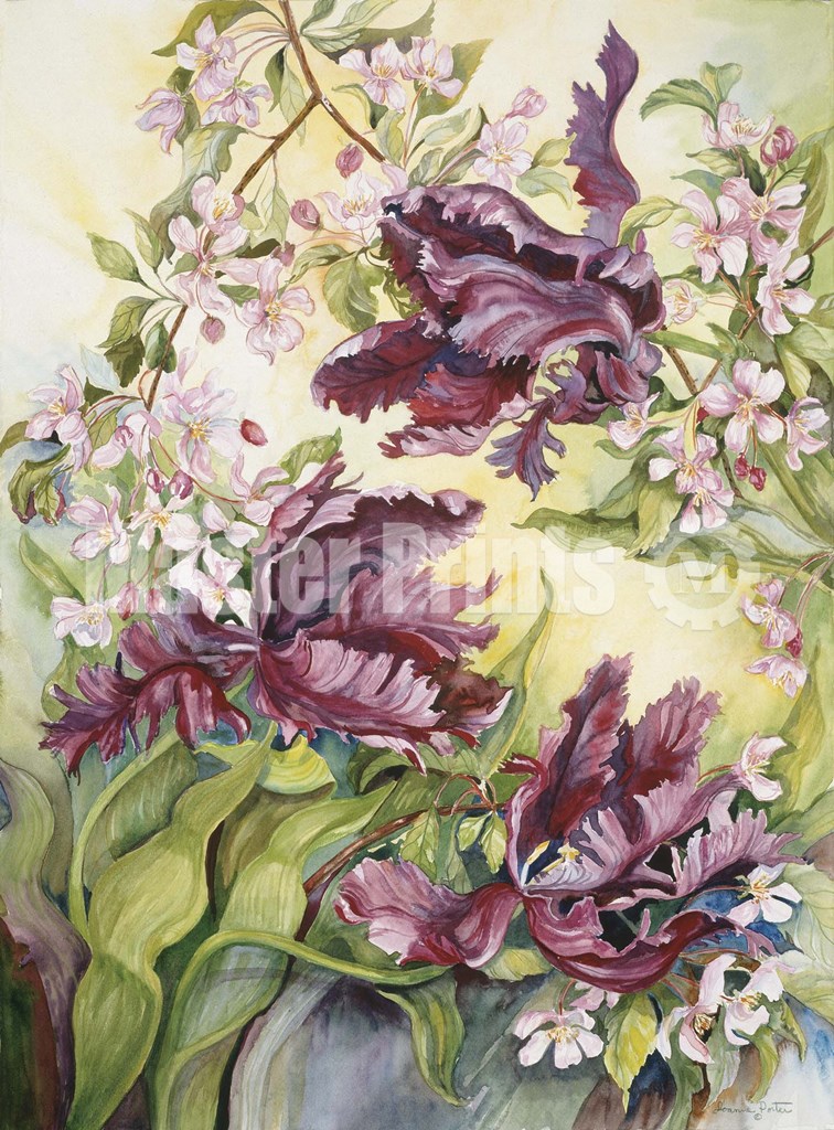 Joanne Porter Parrot Tulips With Cherry Blossoms