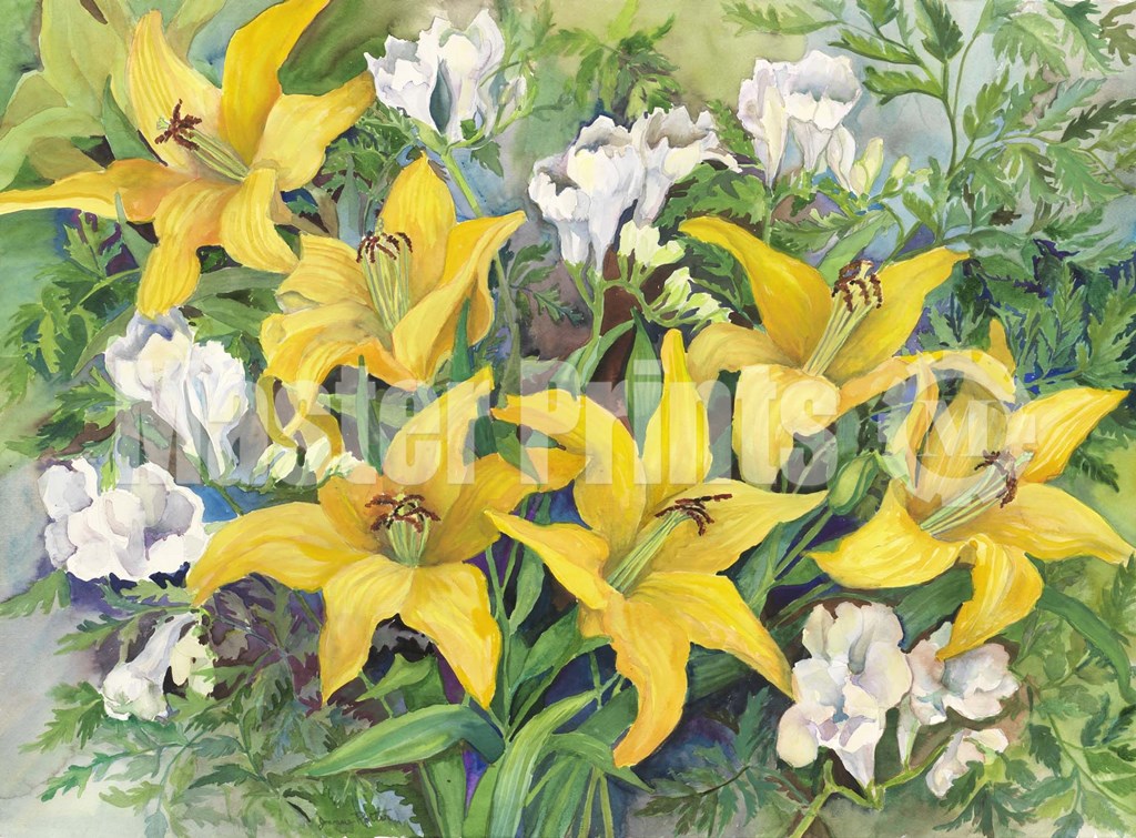 Joanne Porter Gold Lilies And Freesia