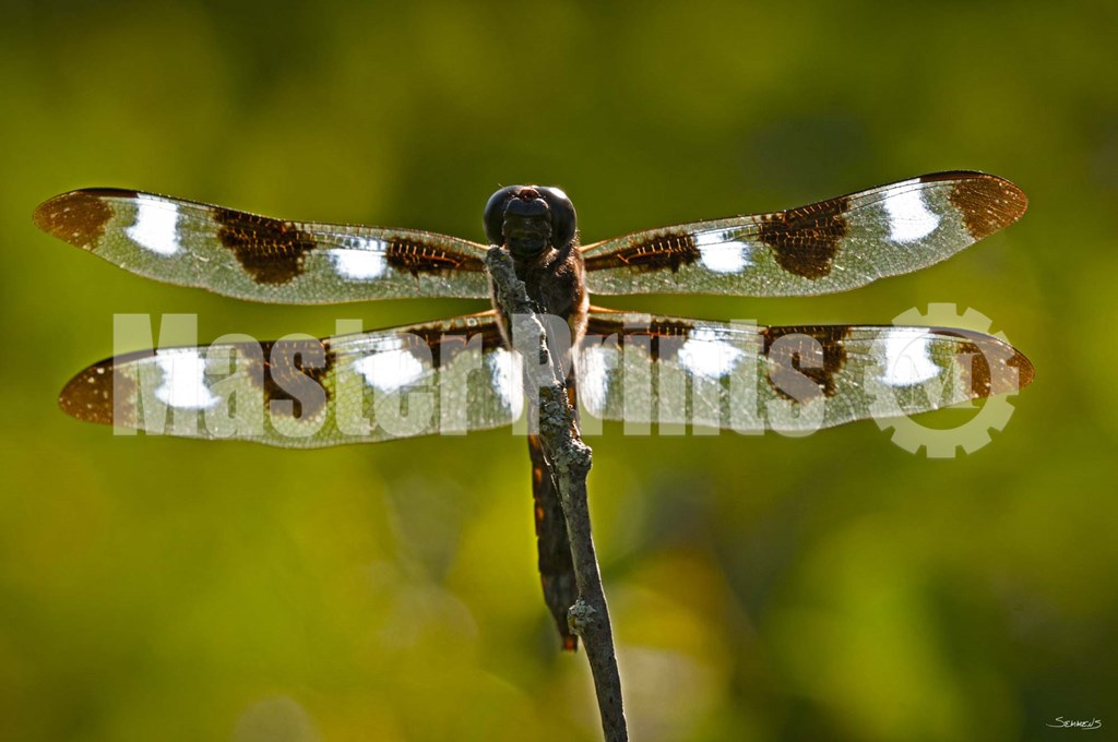 Title: Dragonfly With Brown And White On Branch