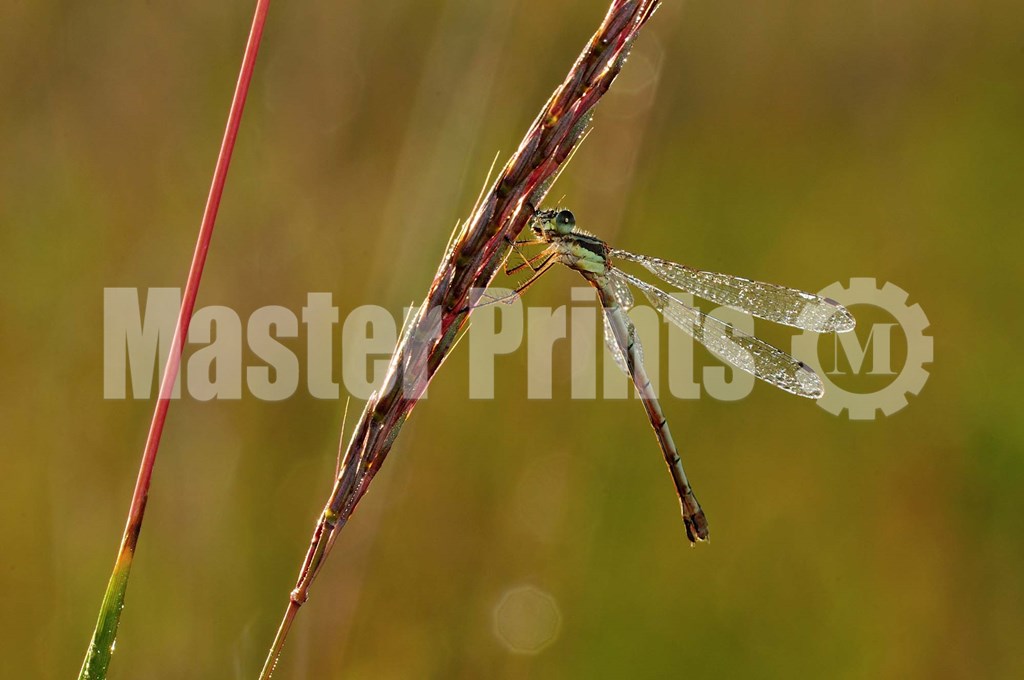 Title: Green Dragonfly On Red Stem