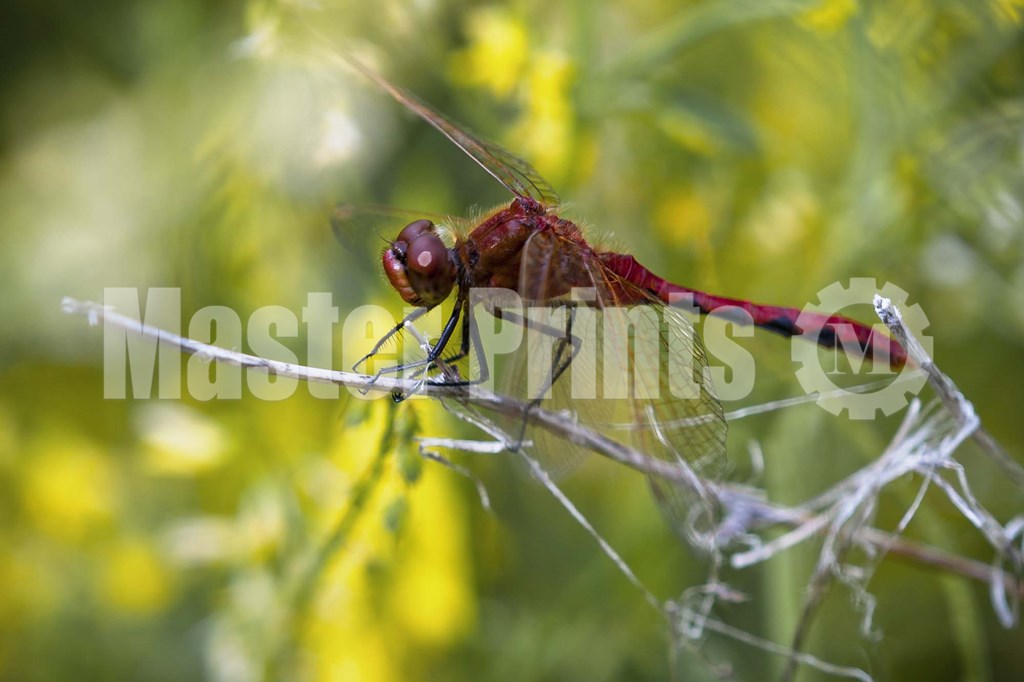 Red Dragonfly On White Stem by Gordon Semmens art print