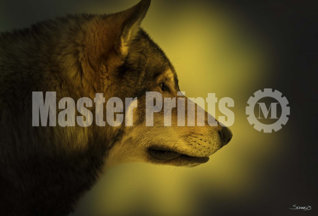 Wolf Profile In Orange Fall Leaves by Gordon Semmens art print