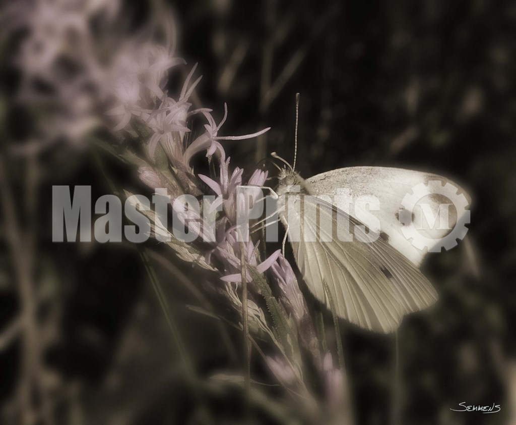 Moth On Lavendar Wildflower by Gordon Semmens art print