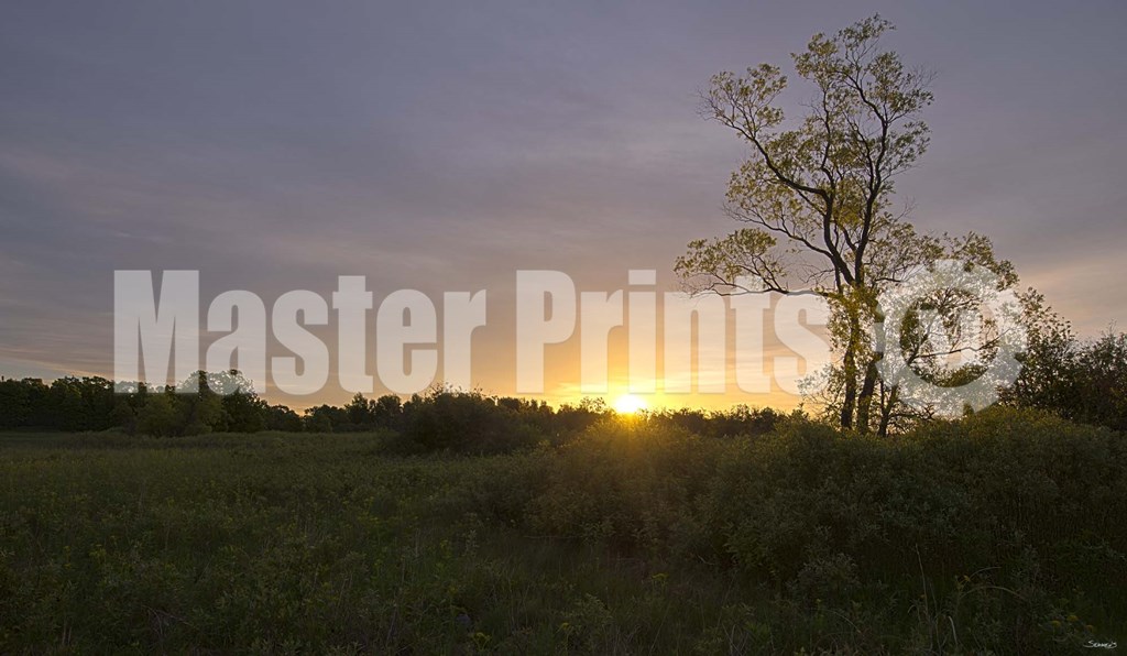 Gordon Semmens Green Field And Tree At Sunset