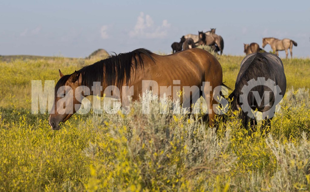 Title: Horses Grazing In Yellow Field III