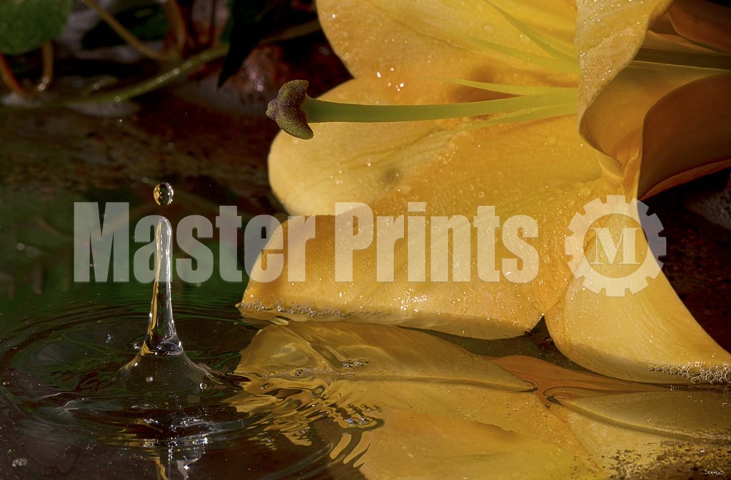 Gordon Semmens Yellow Flower And Rippled Water Drop