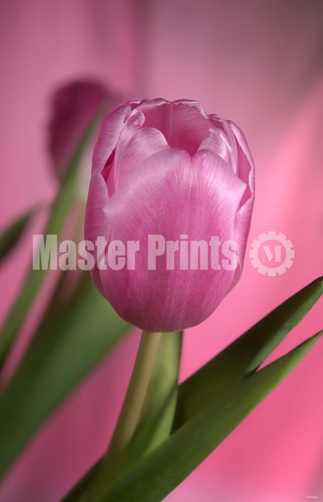 Gordon Semmens Pink Tulip And Stem On Pink