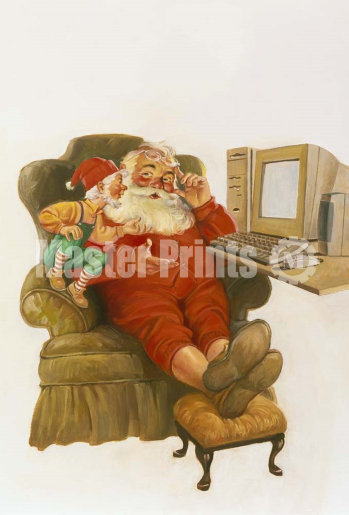 Santa Learning Computer by Hal Frenck art print