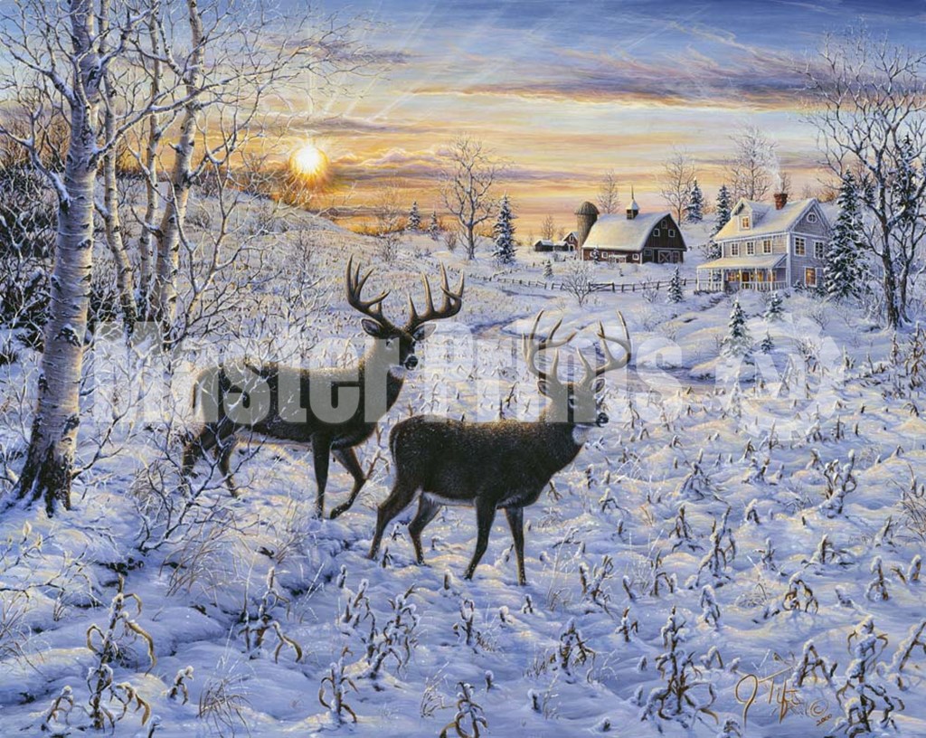 Two Deer In The Moonlight by Jeff Tift art print