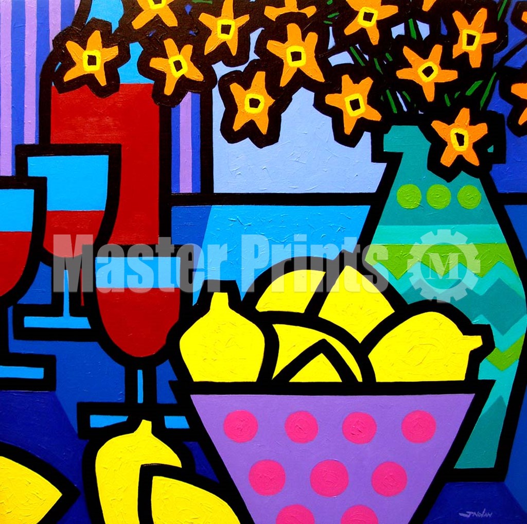 Wine, Lemons and Flowers by John Nolan art print