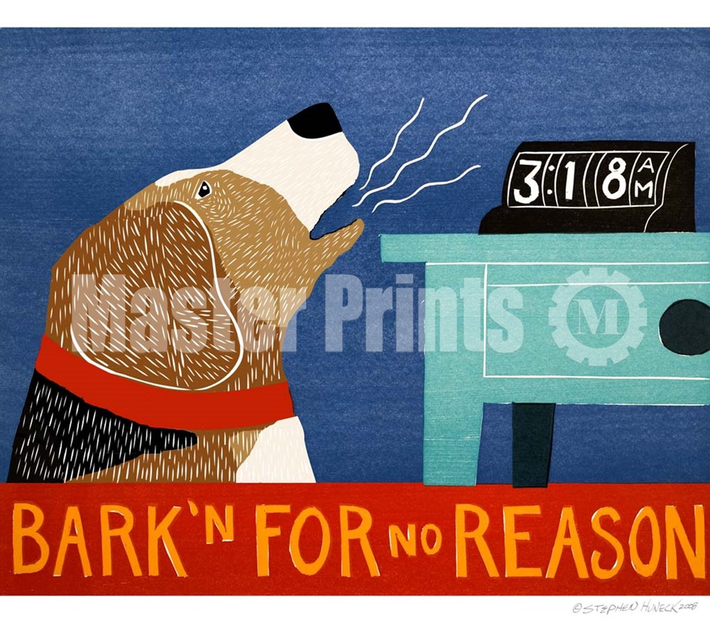 Barkin for no reason Beagle by Stephen Huneck art print