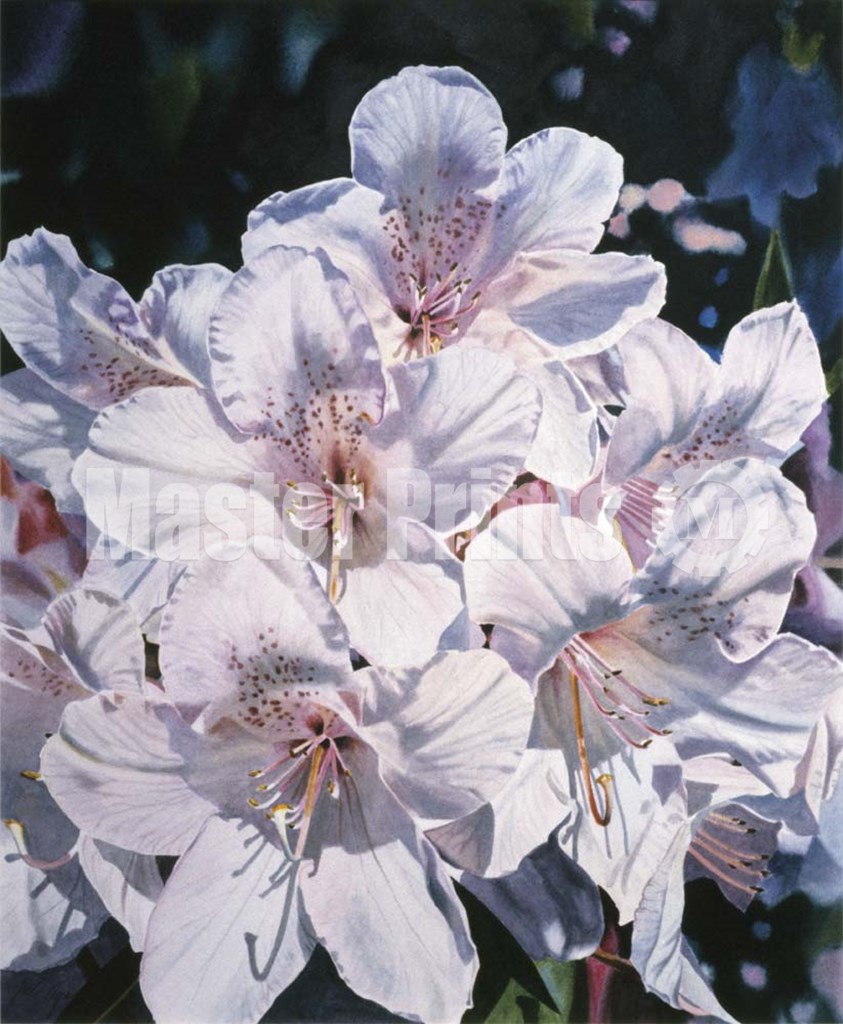 You are viewing a Serigraph print. Fine artists create serigraphs in limited runs by applying layer upon layer of pigment to the print surface by pressing it through a mesh screen containing a stencil. The complex and lengthy process commonly uses inks for pigment and stencils made of a variety of materials. Because of the nature of the process each serigraph is unique.
