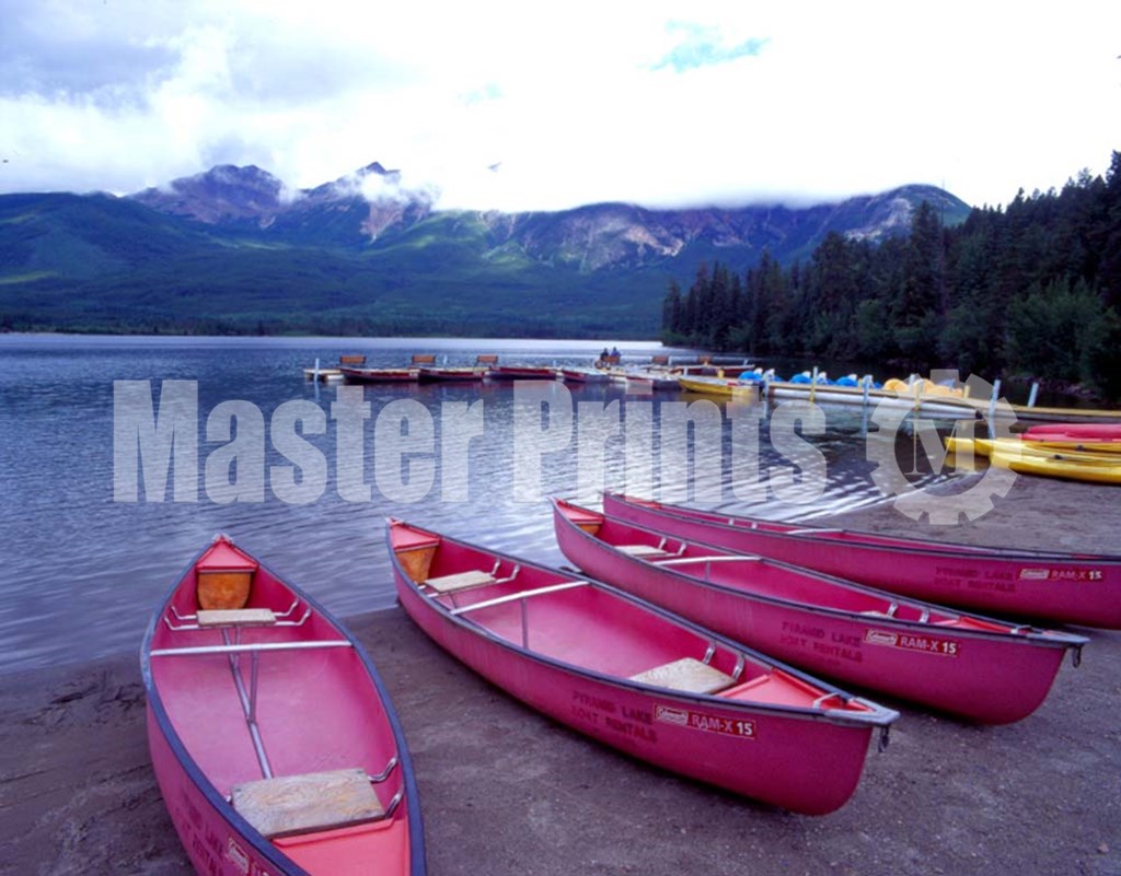 Title: Four Pink Boats, Canadian Rockies 06