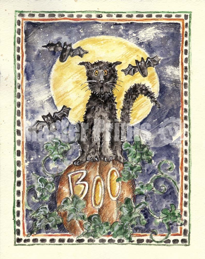 BOO Cat on Pumpkin by Shelly Rasche art print