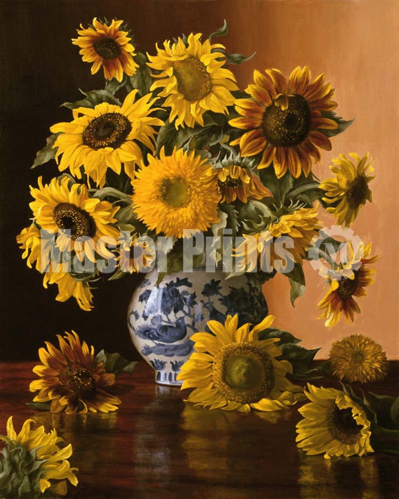 Sunflowers in a Blue Willow Vase by Christopher Pierce art print