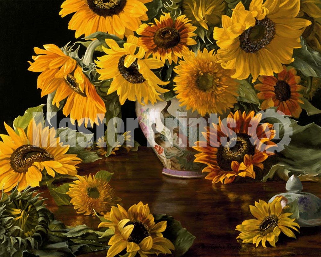 Sunflowers in a White Chinese Vase by Christopher Pierce art print