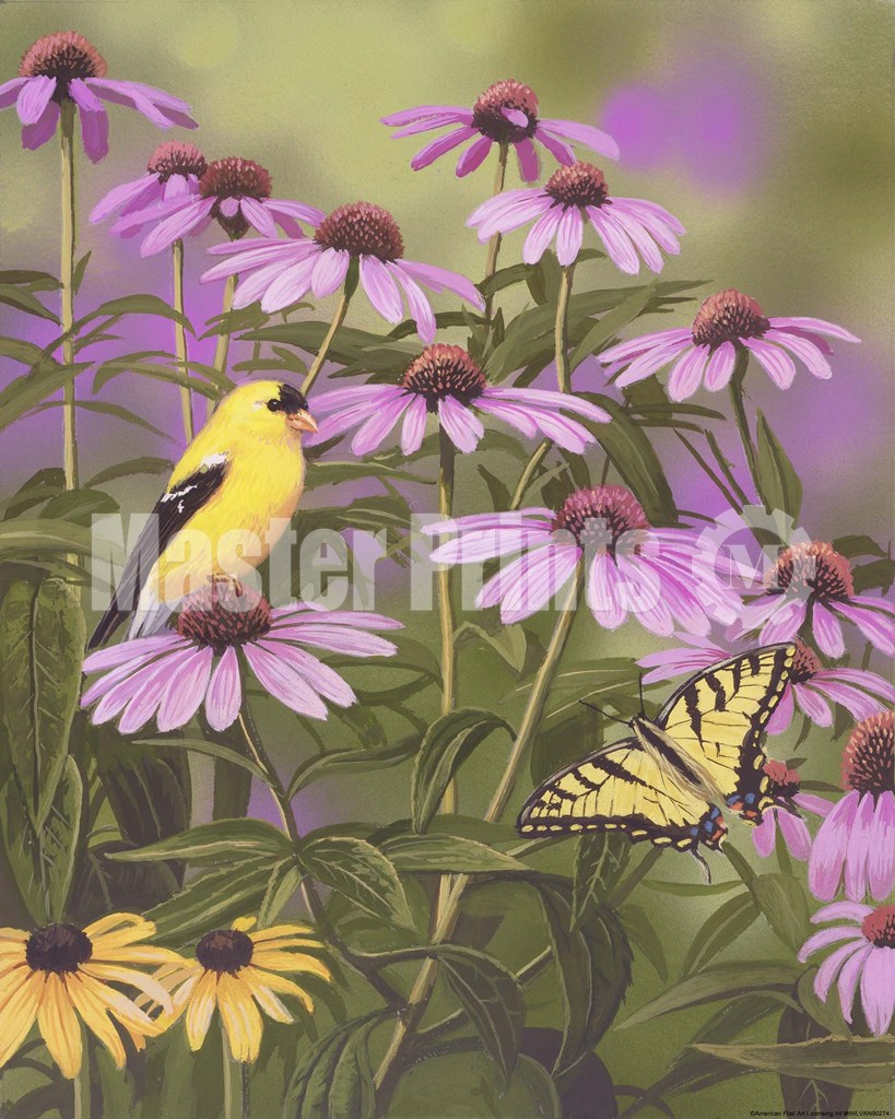 Butterfly & Finch Amongst Flowers by William Vanderdasson art print