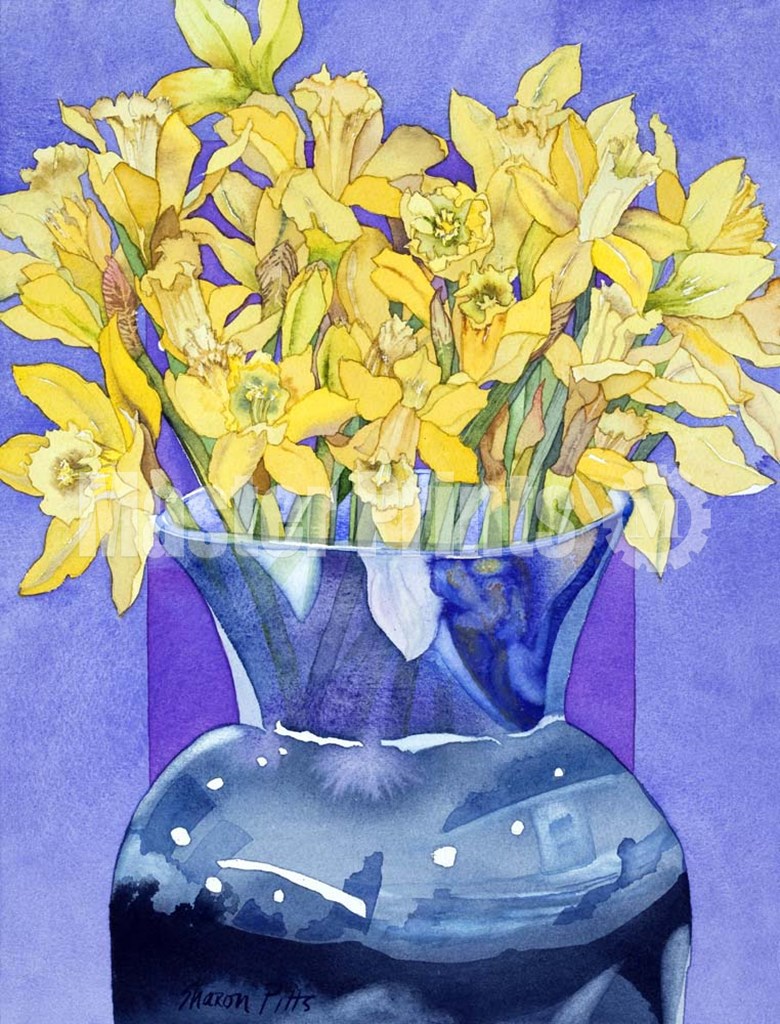 Sharon Pitts Daffodils In Cobalt