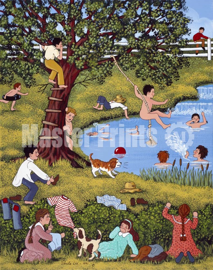 Playful Pranks at the Pond by Sheila Lee art print