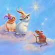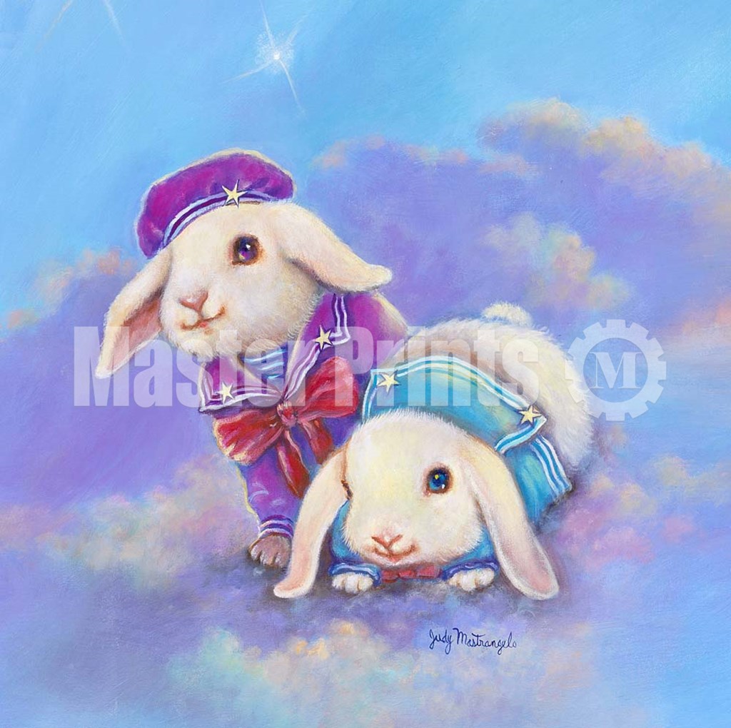 Judy Mastrangelo Two Lop Eared Bunnies Mouse and Two Bunnies in Clouds I