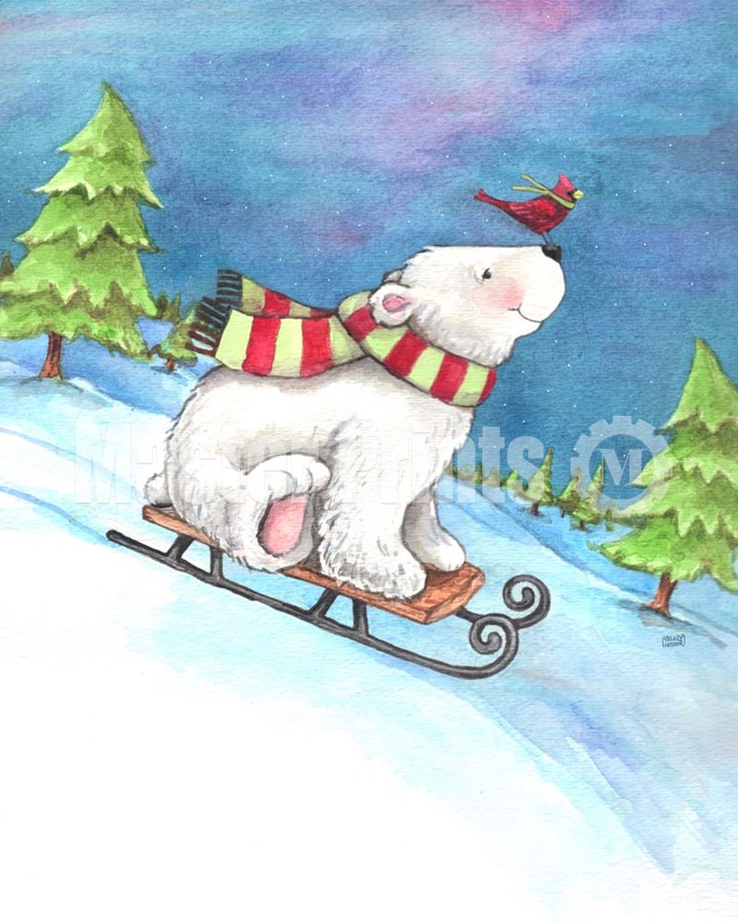 Polar Bear and Sled by Melinda Hipsher art print