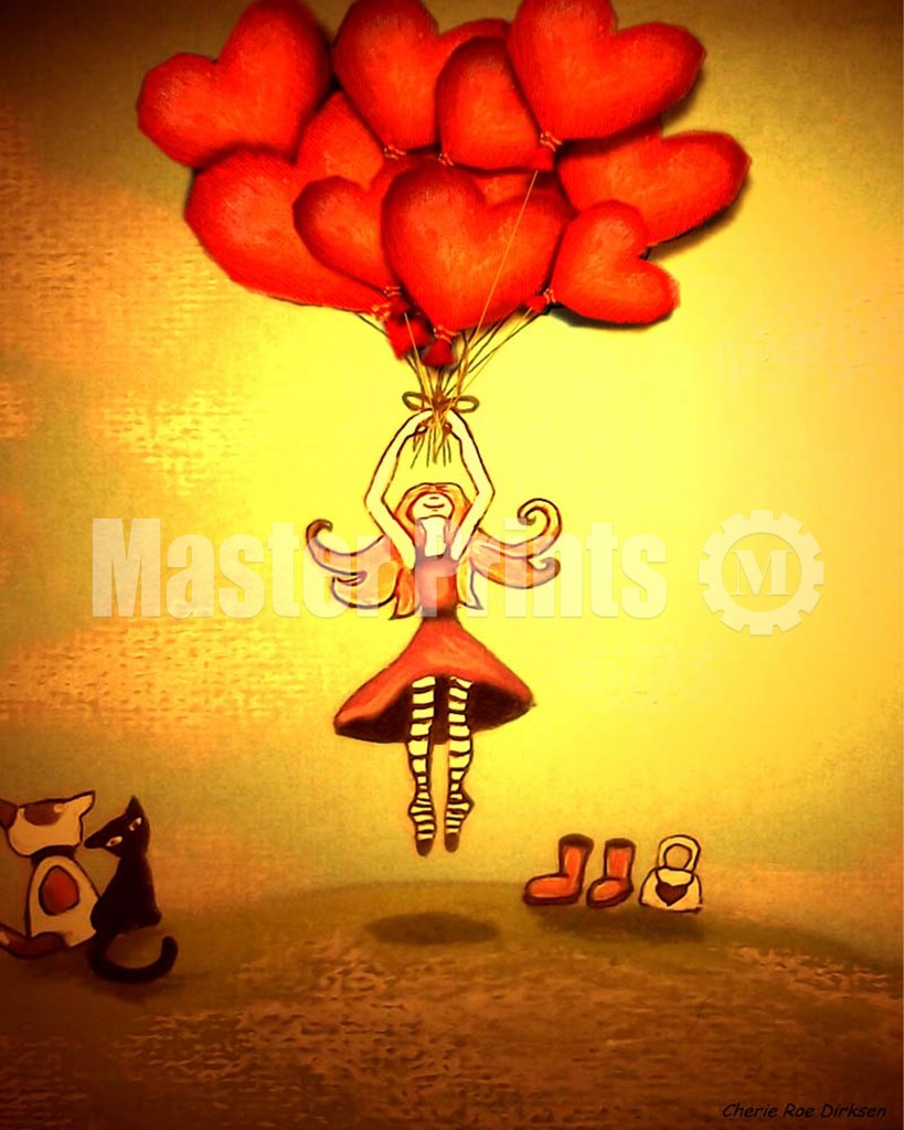 Girl Holding Heart Balloons by Cherie Roe Dirksen art print