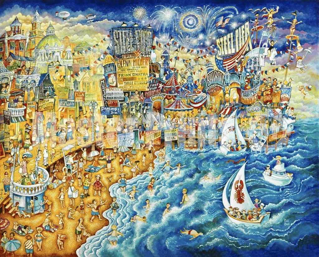 Steel Pier Night And Day by Bill Bell art print