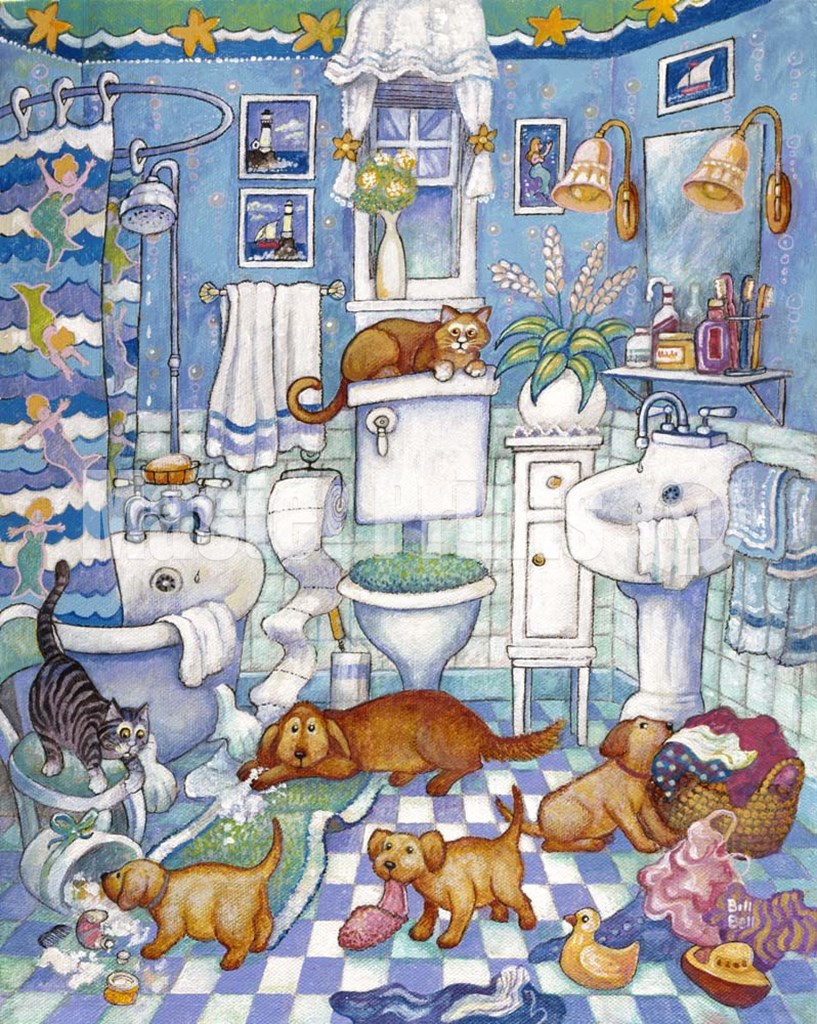 Bathroom Pups by Bill Bell art print