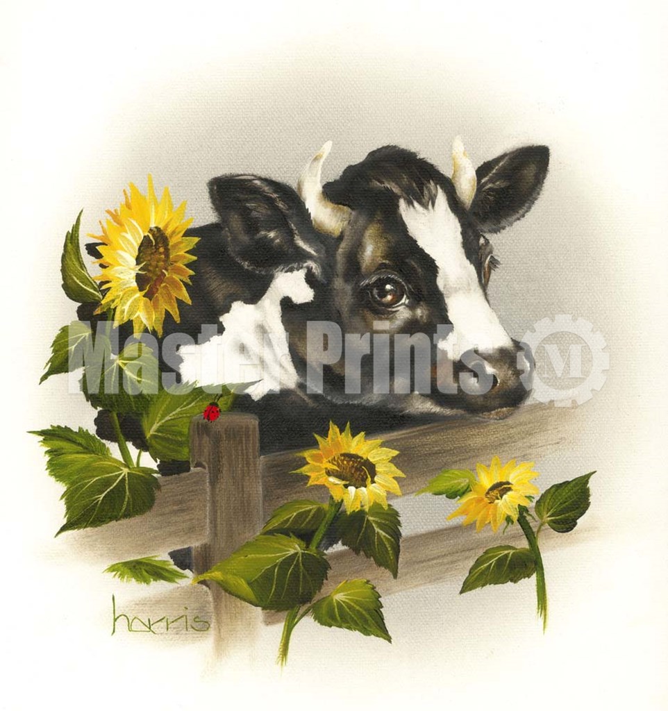 Bull & Sunflowers by Peggy harris art print