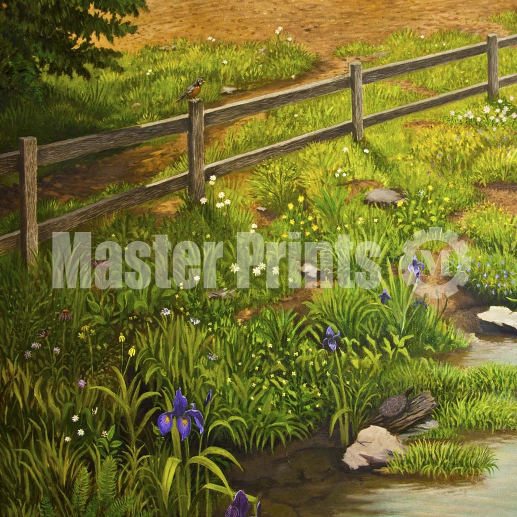 You are viewing a Serigraph print. Fine artists create serigraphs in limited runs by applying layer upon layer of pigment to the print surface by pressing it through a mesh screen containing a stencil. The complex and lengthy process commonly uses inks for pigment and stencils made of a variety of materials. Because of the nature of the process each serigraph is unique.