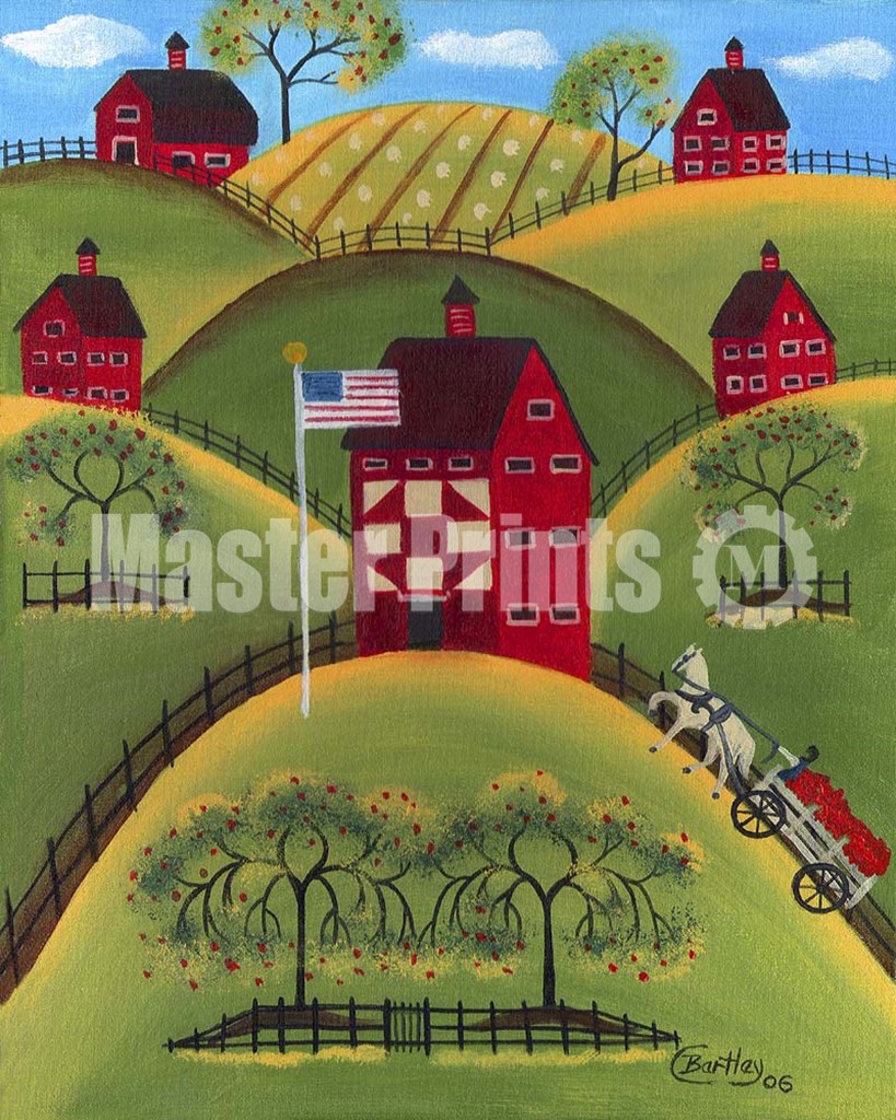 Red Apple Quilt Barns by Cheryl Bartley art print