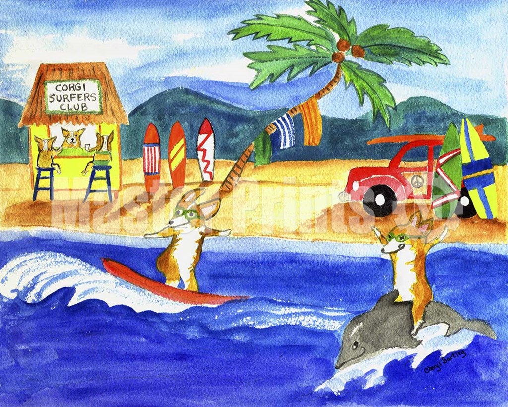 Corgi Surfers Club by Cheryl Bartley art print