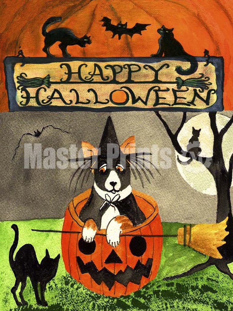 Happy Dog Pumpkin Halloween by Cheryl Bartley art print