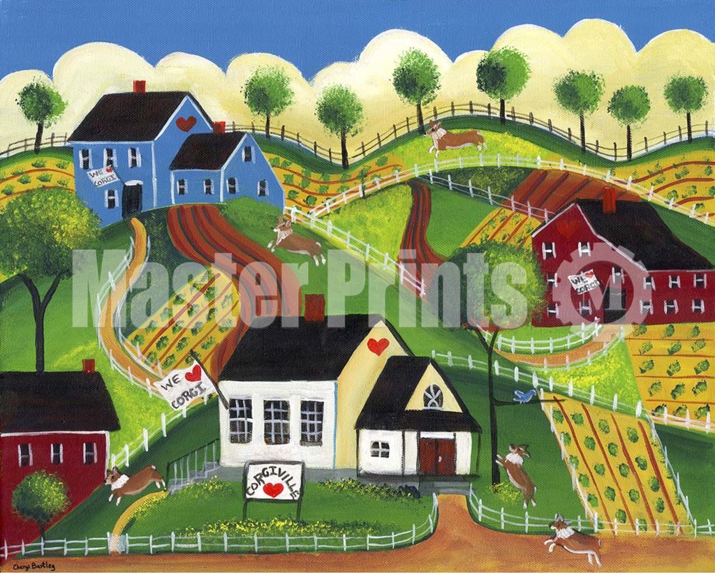 Corgiville by Cheryl Bartley art print