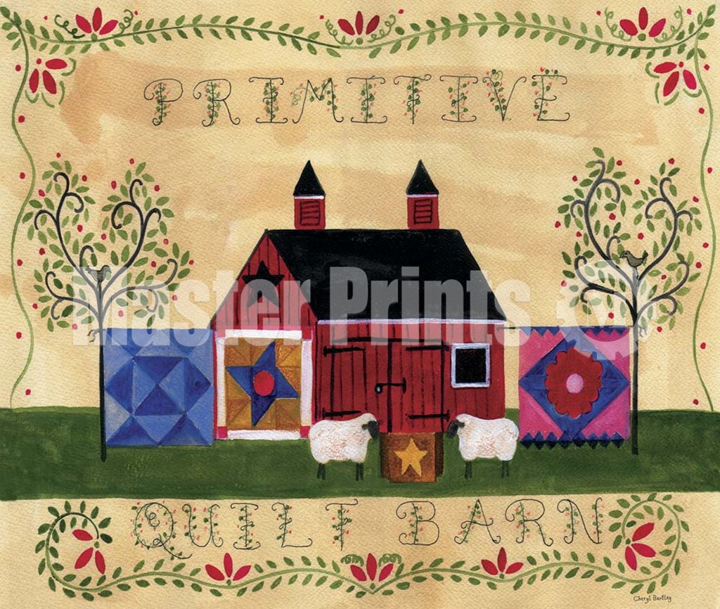 Primitive Quilt Barn Sampler by Cheryl Bartley art print