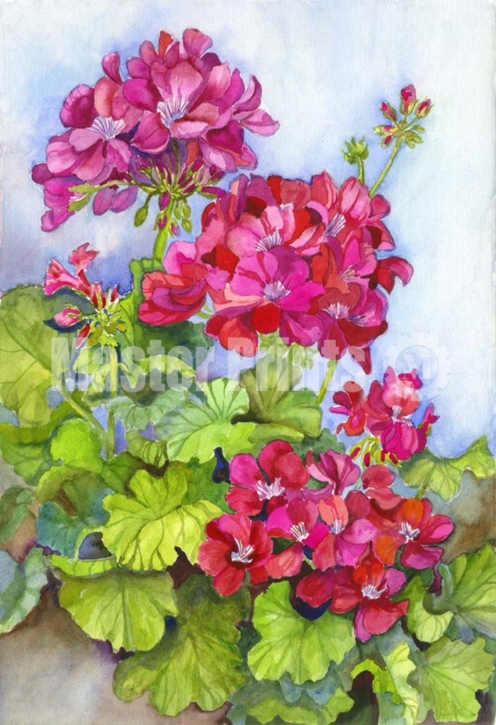 Bold Blue Sky Bright Geraniums by Joanne Porter art print