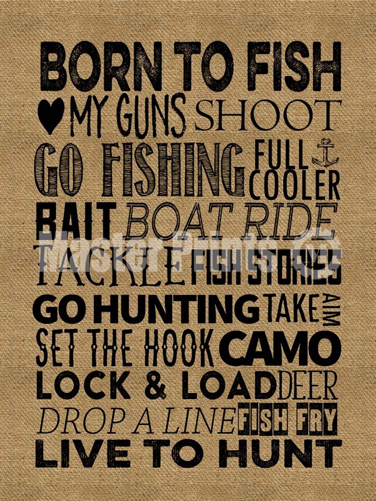 Title: Fishing Hunting Burlap