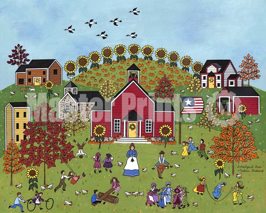 Schoolyard Fun With Green by Medana Gabbard art print